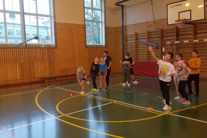 Posílám pár fotek ze Základní a Praktické školy, Žitomířská, Český Brod z hodiny tělesné výchovy. Děti na prvním stupni se po rozcvičce věnují běhu, skákání přes překážky a hodu pěnovým oštěpem. Trénovat budeme dál a v lednu se vesele vrhneme na skok do dálky. S pozdravem Alena Stárková