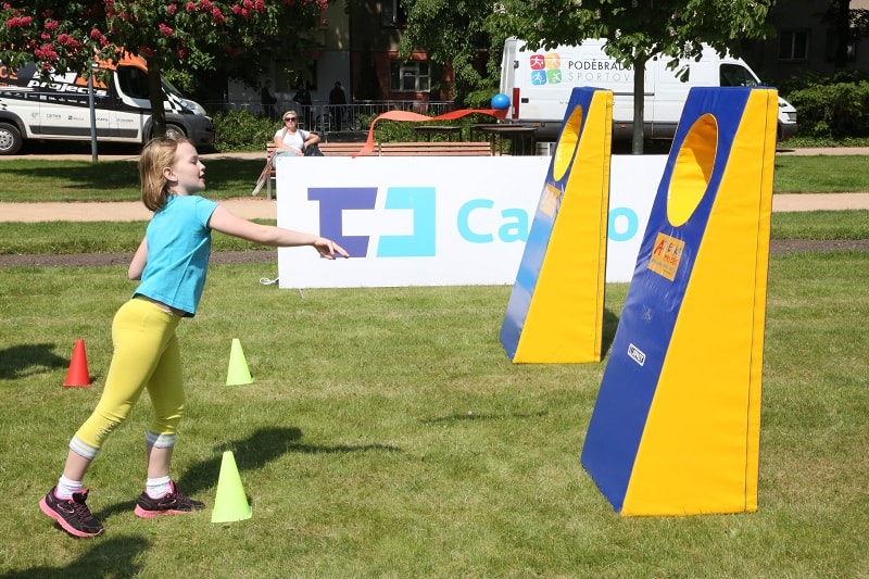 Náš stan jsme rozbalili na náměstí T. G. Masaryka, přímo vedle fontány. Jako vždy byl pro děti nachystaný zábavný víceboj, kterého se navíc po zimním spánku zúčastnil i patron projektu, pohádkový Krteček. Po zimě jsme provětrali i naši mobilní atletickou dráhu, na které si děti mohly vyzkoušet, jak rychle už umějí běhat. Na všechny malé sportovce čekaly po zdolání disciplín drobné dárky: nálepky a náramky s grafikou projektu a malé pozornosti od České spořitelny.