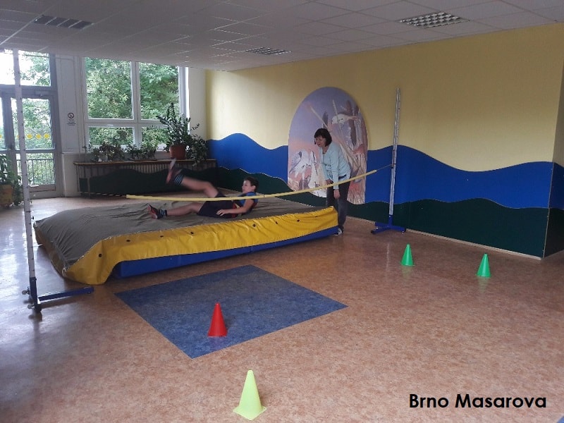 Po získání DVD Atletika pro děti do škol a spolu se zhoršením počasí, jsme se schovali do sokolovny a vyzkoušeli jsme lavičky, sedy, lehy, švihadla, švédskou bednu a žíněnky. Drobně jsme opravili běžeckou abecedu do níž jsme zařadili cviky pozpátku (legrace!), vyladili jsme detaily při nízkém startu, ale nejvíce jsme se poučili v metodice nácviku hodu míčkem s rozběhem.