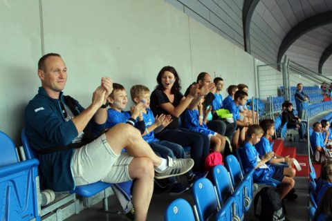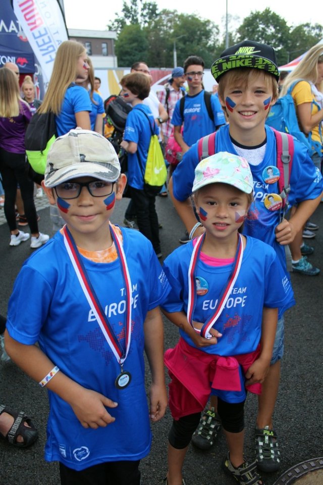 Do Ostravy jsme dojeli v pravé poledne a hurá do FAN zóny, kde jsme všichni obdrželi krásná modrá trička v barvě Evropy. Ve FAN zóně byly pro školáky připraveny nejrůznější soutěže, mohli jsme si také vyrobit vlastní startovní čísla či si nechat namalovat na tvář vlaječky. Také zde probíhala autogramiáda patronů – Báry Špotákové, Míši Hrubé, Pavla Masláka a Honzy Kudličky.