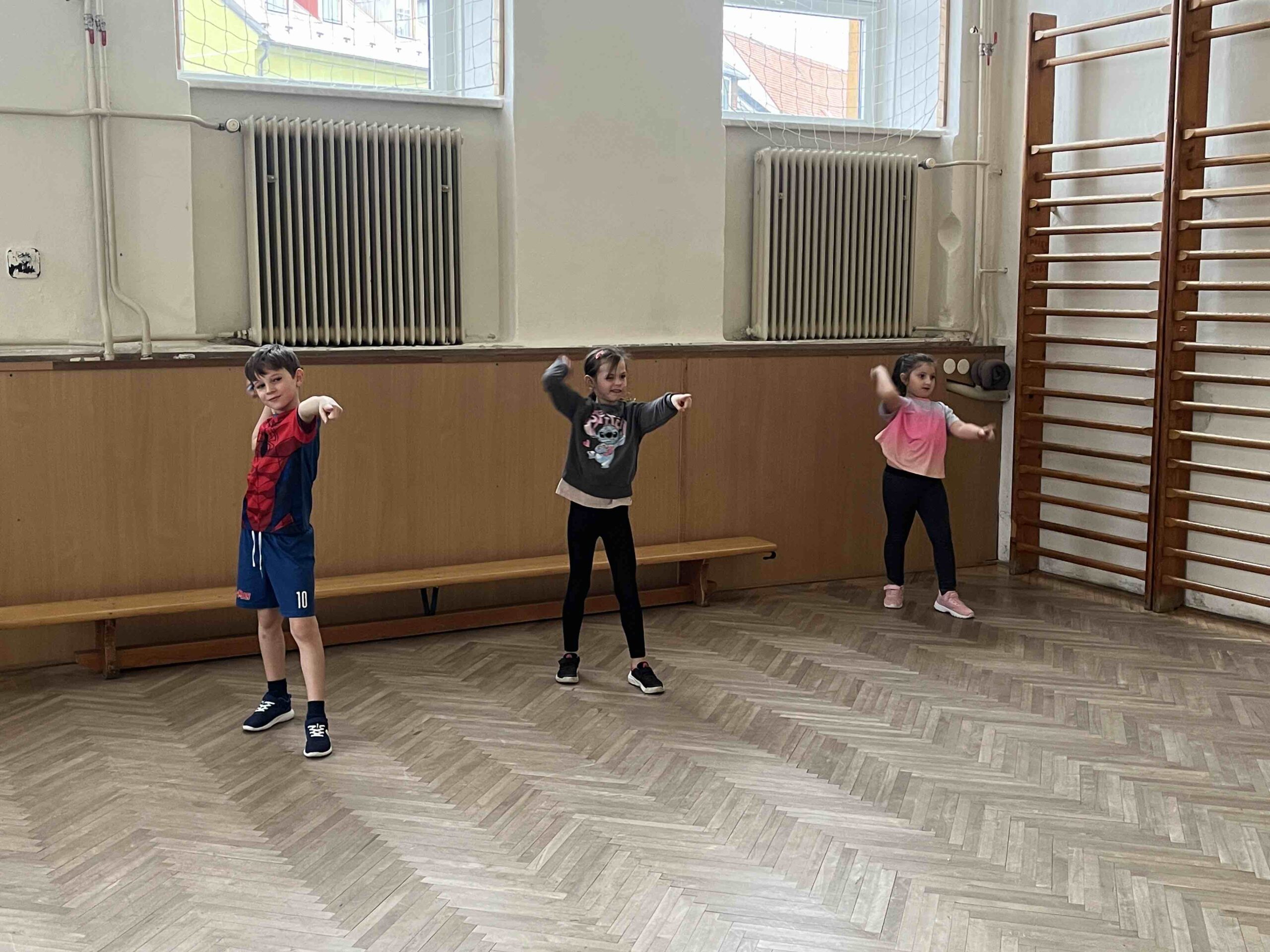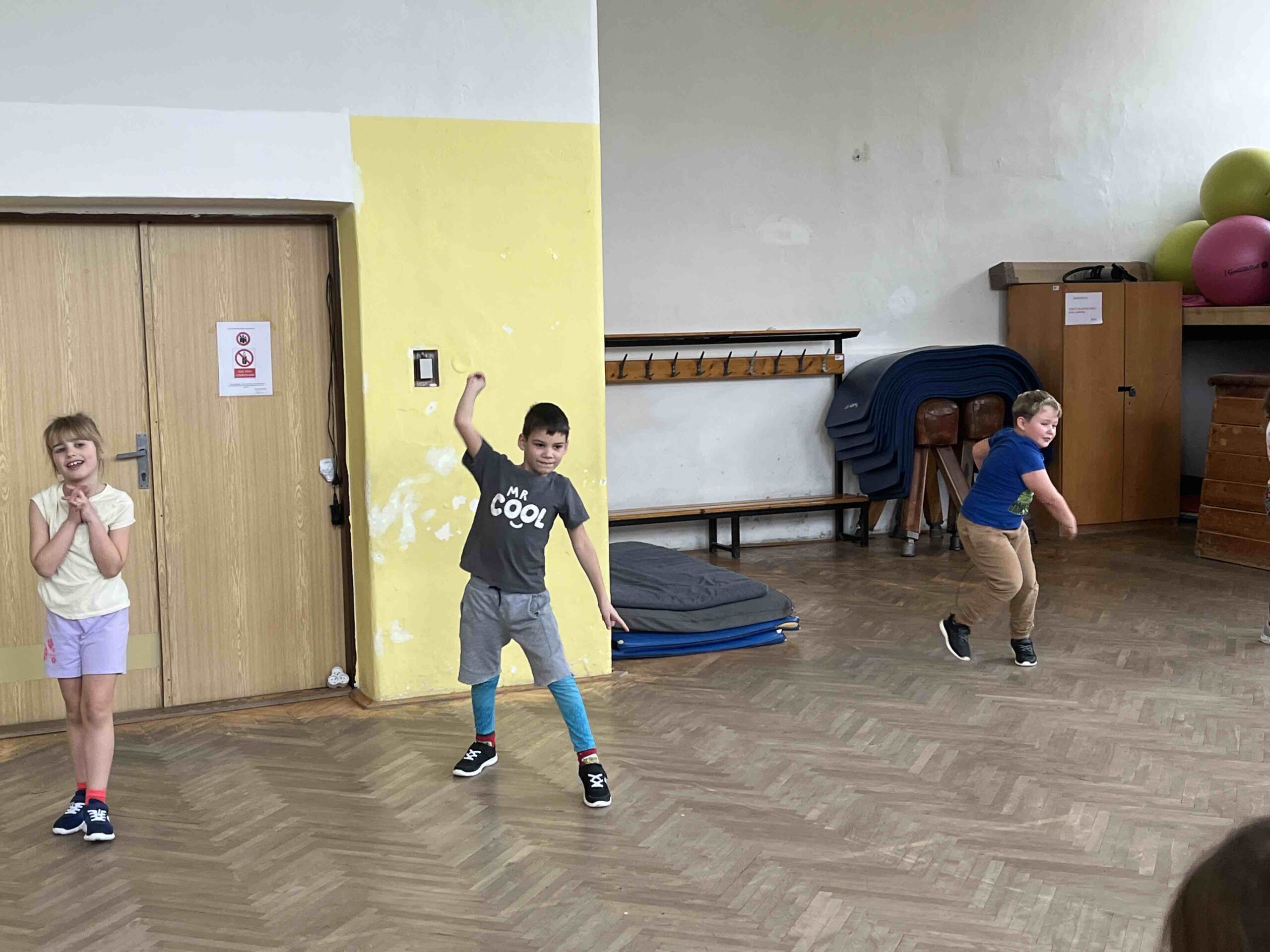Atletické disciplíny se snažíme zařadit v hodinách výuky, posílám fotografie, kde s kolegyněmi učíme děti házet, skákat i nízkému startu.