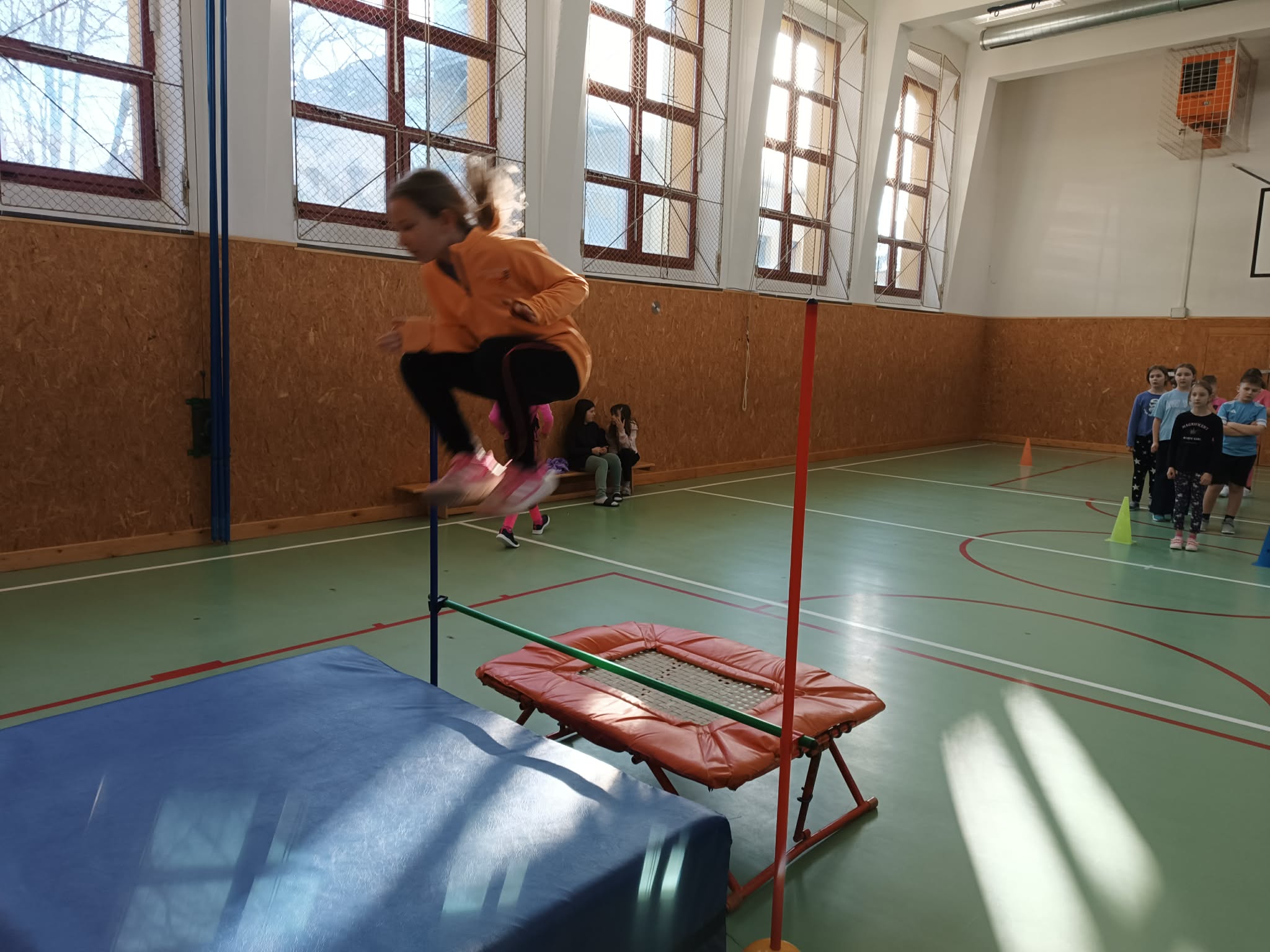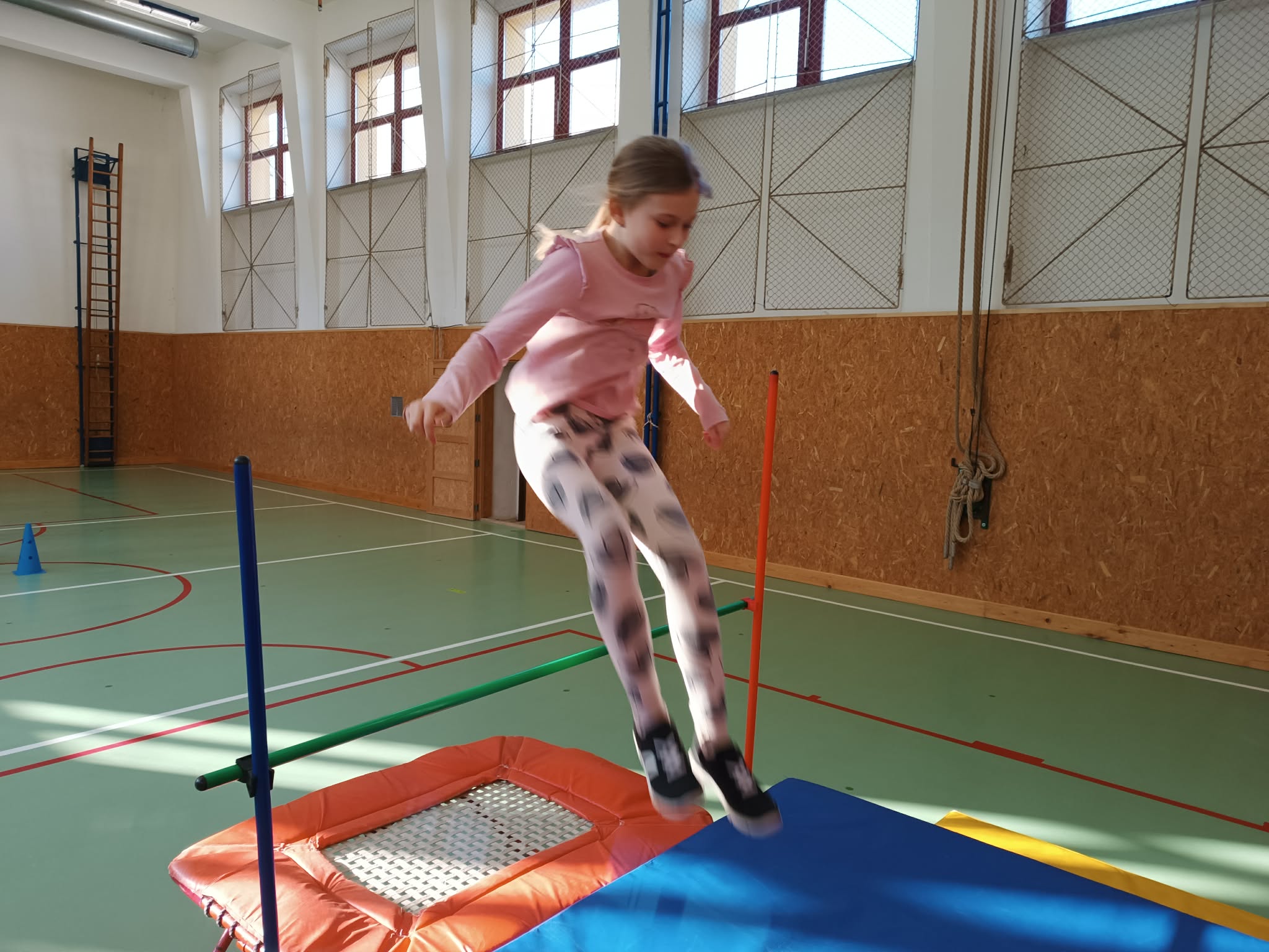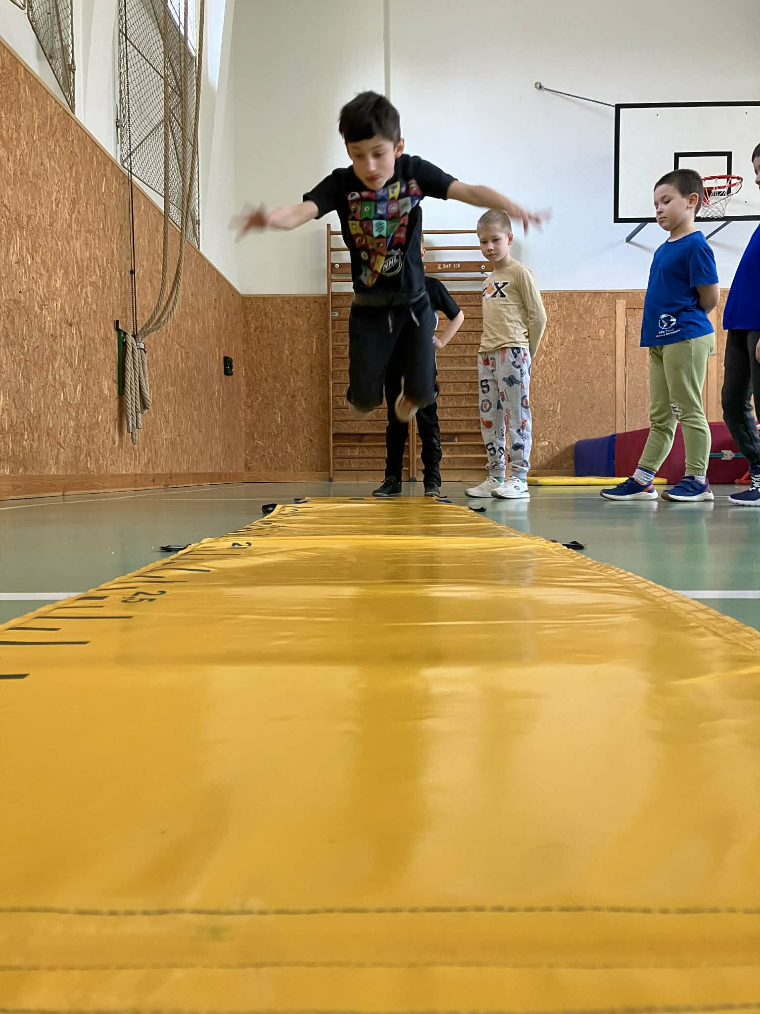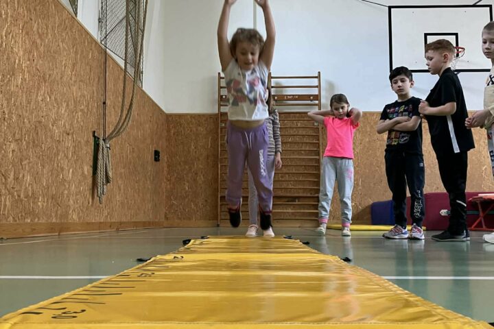 Žáci si vyzkoušeli různé formy skákání – od skoku do dálky z místa, přes boční přeskoky, až po skok do výšky. K tomu přidali různé skokanské hry a pohybové hrátky, které rozvíjely nejen jejich fyzickou kondici, ale také koordinaci a smysl pro týmovou spolupráci.