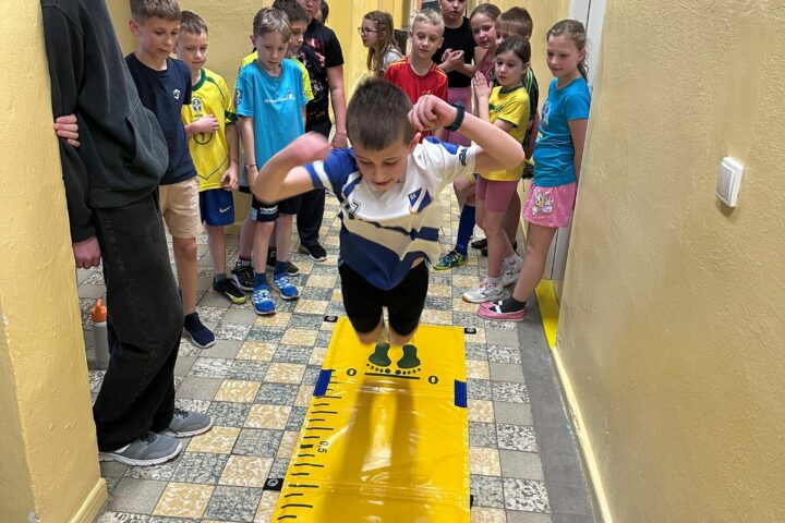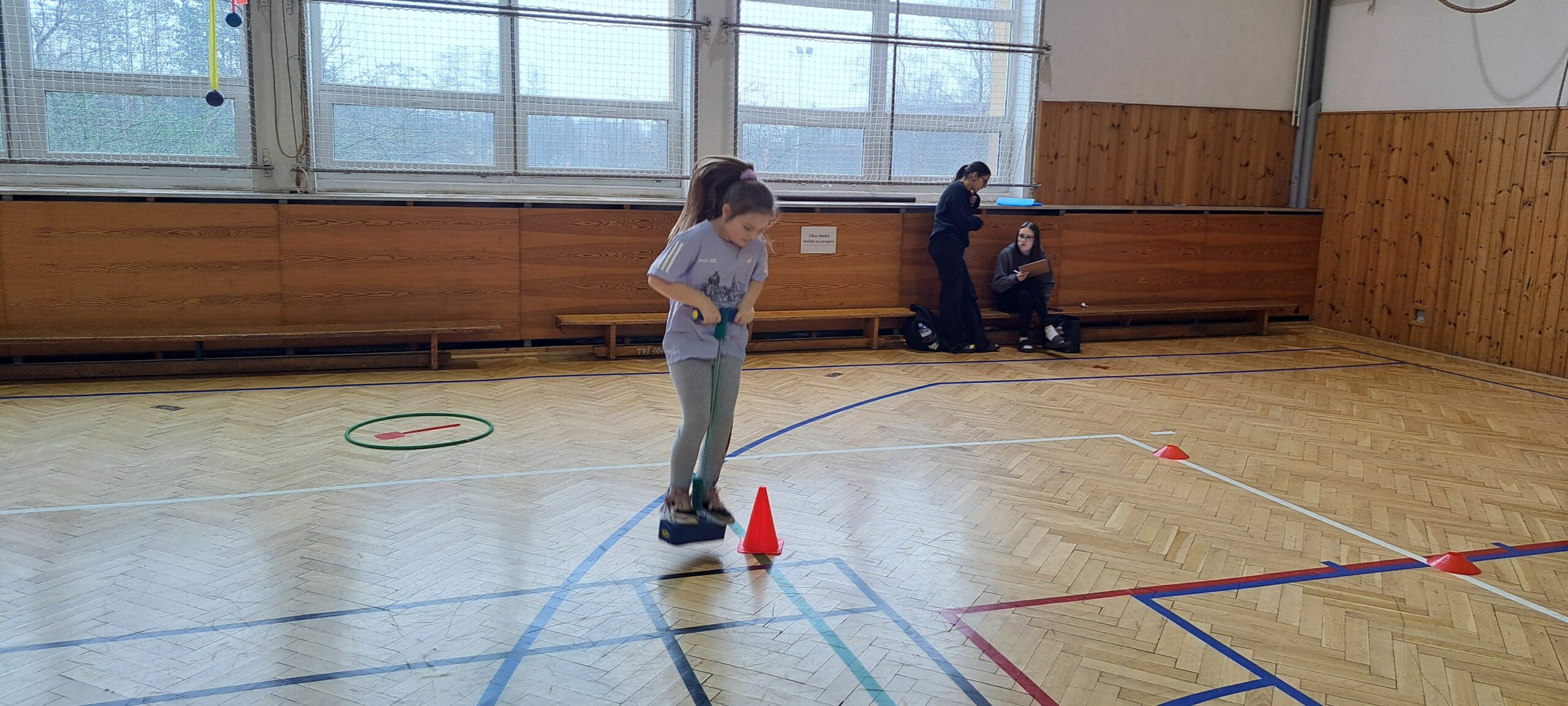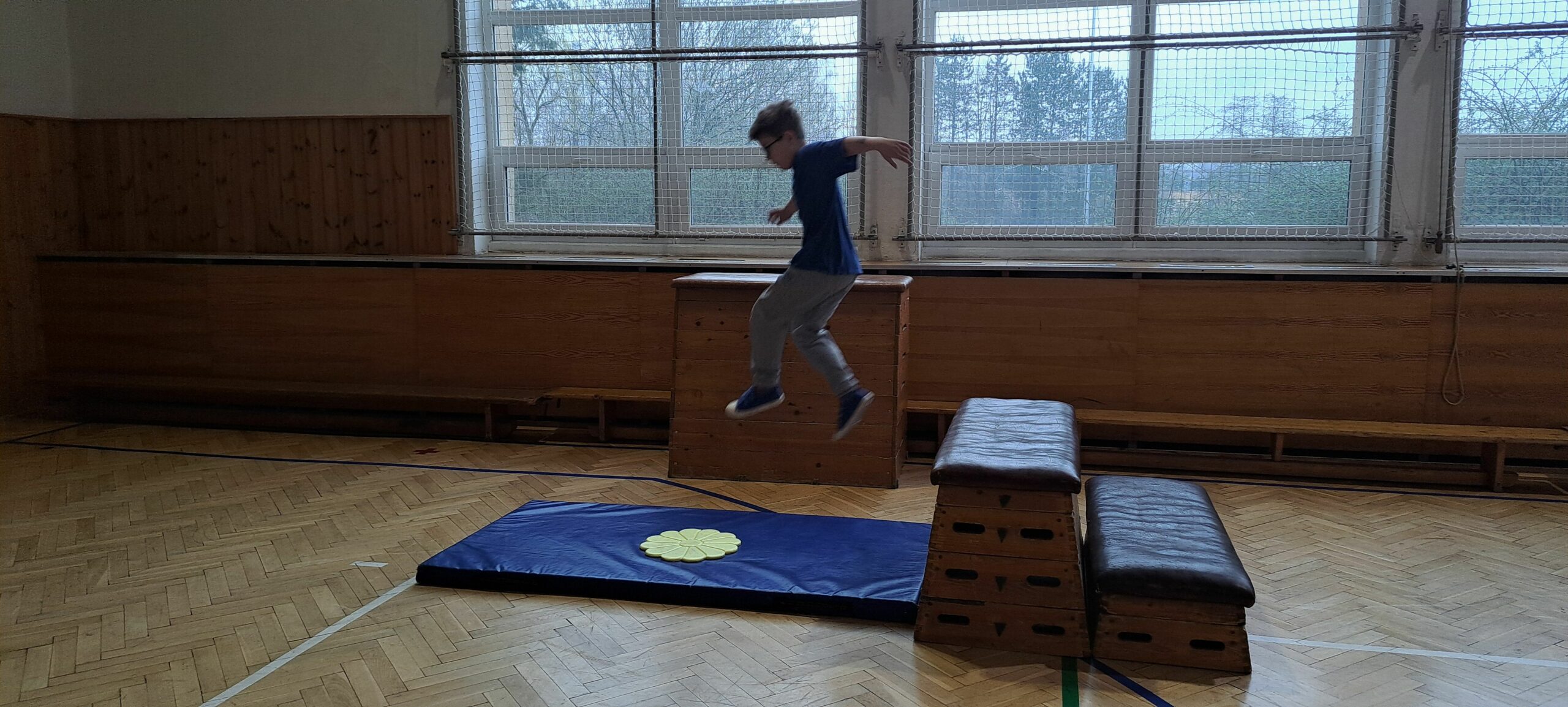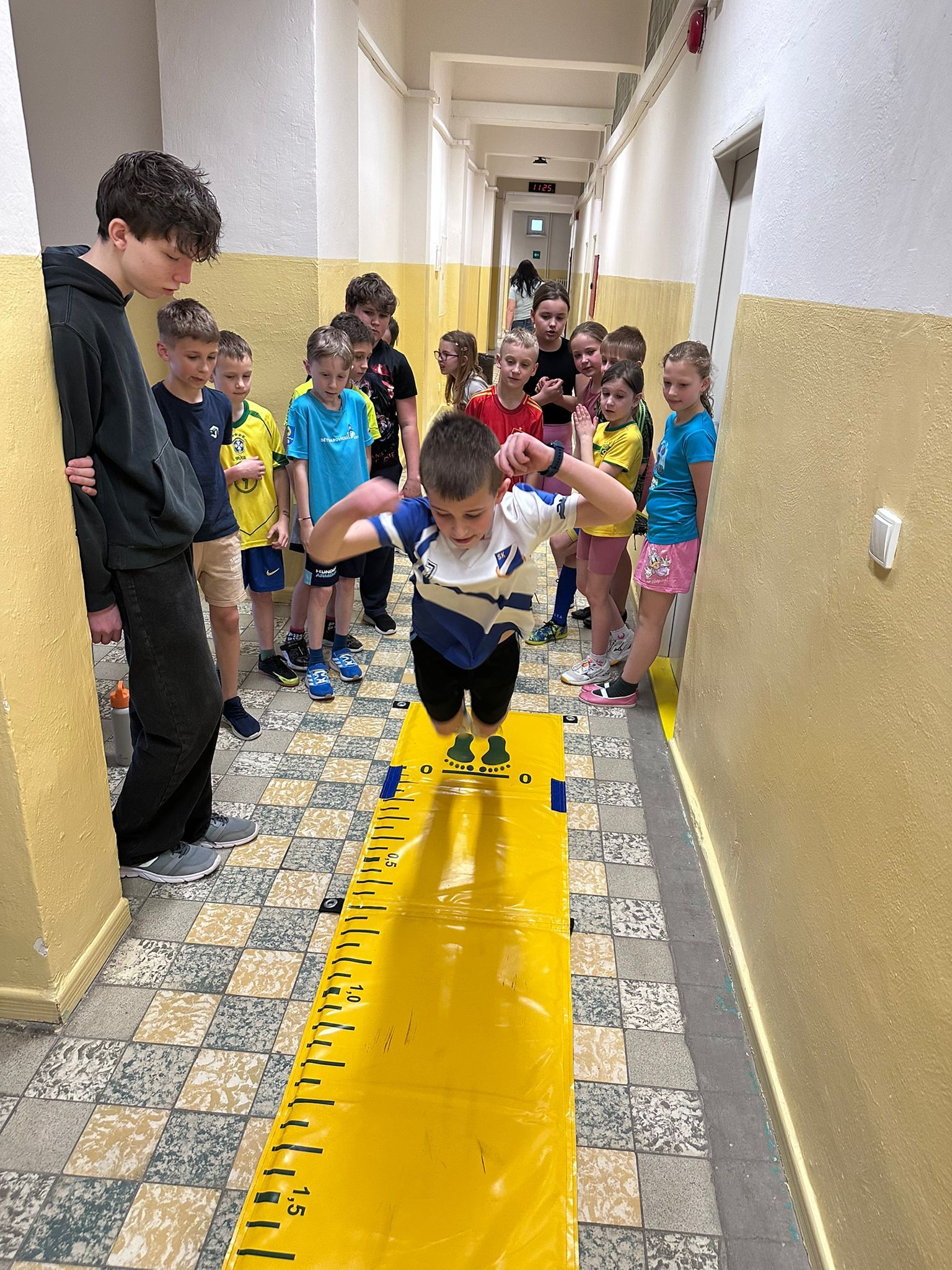 Ve čtvrtek 26. března 2026 se na naší škole konalo skákací dopoledne pro žáky 1. stupně. Přestože nám plány částečně překazilo nepříznivé počasí a nečekaná komplikace v podobě ztraceného klíče od vybavení na skok vysoký, nenechali jsme se odradit. Program jsme operativně přesunuli do tělocvičny a na chodbu – a jak se ukázalo, na radosti dětí to vůbec nic neubralo. Jednotlivé ročníky jsme rozdělili na dvě skupiny, které se v průběhu dopoledne vystřídaly. Jedna část začínala v tělocvičně na skákací překážkové dráze, druhá si mezitím užívala doprovodné aktivity na chodbě.