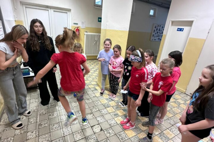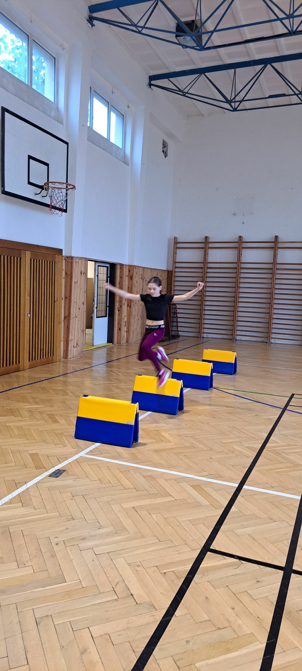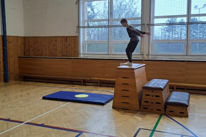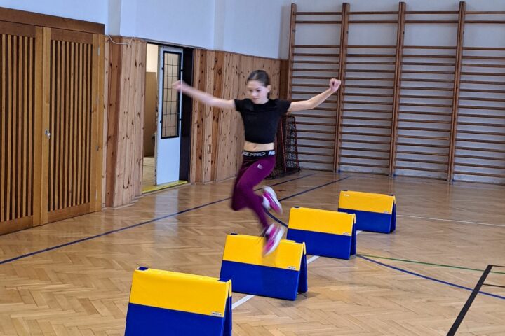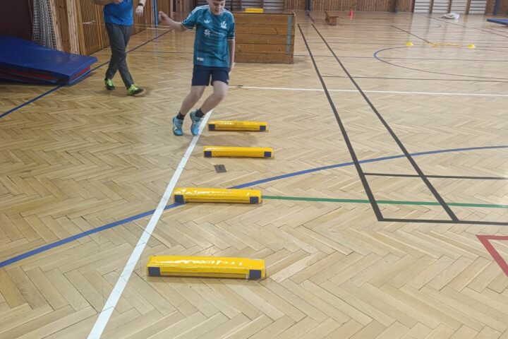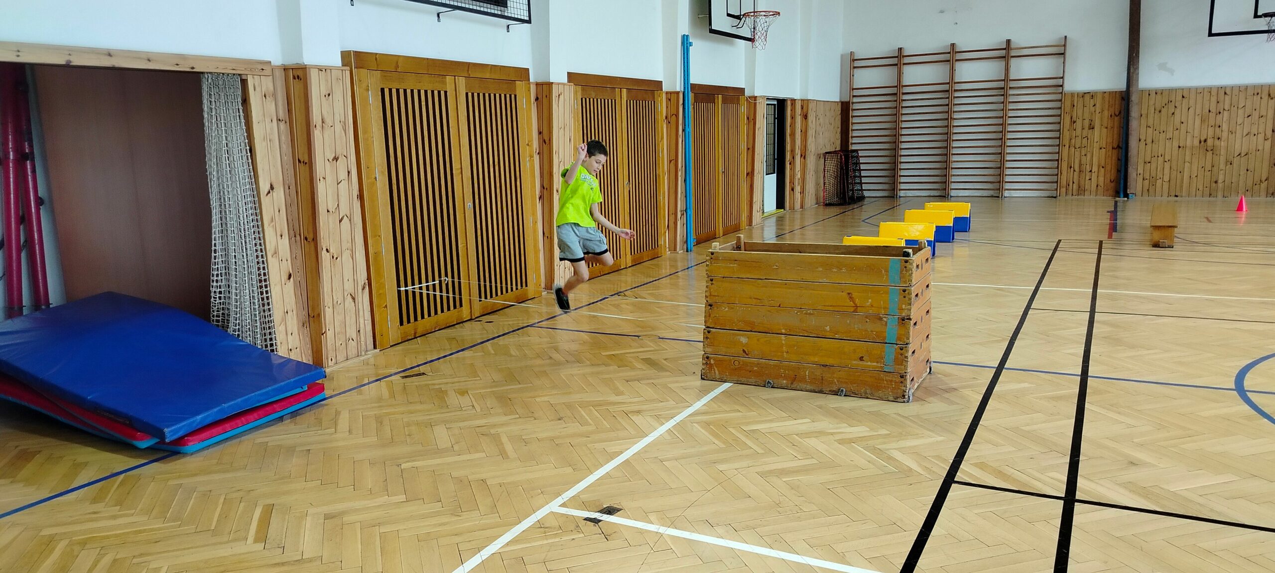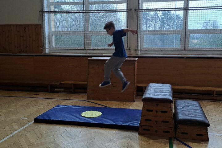 Ve čtvrtek 26. března 2026 se na naší škole konalo skákací dopoledne pro žáky 1. stupně. Přestože nám plány částečně překazilo nepříznivé počasí a nečekaná komplikace v podobě ztraceného klíče od vybavení na skok vysoký, nenechali jsme se odradit. Program jsme operativně přesunuli do tělocvičny a na chodbu – a jak se ukázalo, na radosti dětí to vůbec nic neubralo. Jednotlivé ročníky jsme rozdělili na dvě skupiny, které se v průběhu dopoledne vystřídaly. Jedna část začínala v tělocvičně na skákací překážkové dráze, druhá si mezitím užívala doprovodné aktivity na chodbě.