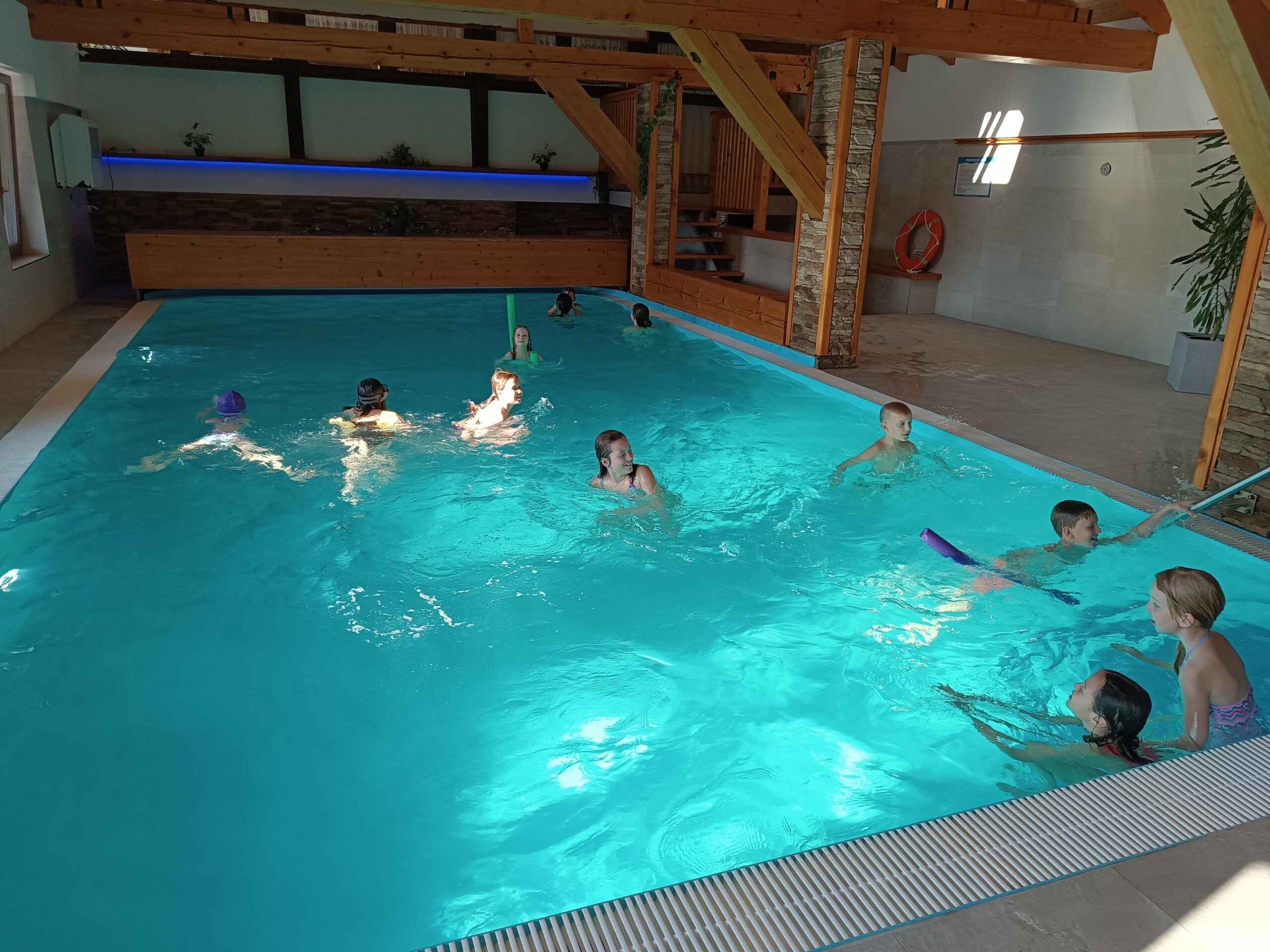 Víkend byl plný pohybu, her a radosti. Děti si užily spoustu běhacích her v lese, nechybělo ani dovádění v bazénu. Zažily mnoho legrace, ještě více pohybu a především posílily kamarádské vztahy v kolektivu.
